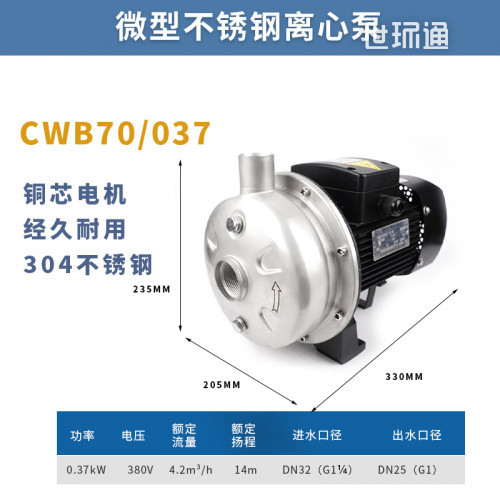 微型不锈钢泵适用于家庭增压供水、园林喷洒、农业灌溉、工业清洗、冷却及供水 系统等,输送对不锈钢(SUS304)无明显腐蚀作用的非易燃易爆液体。