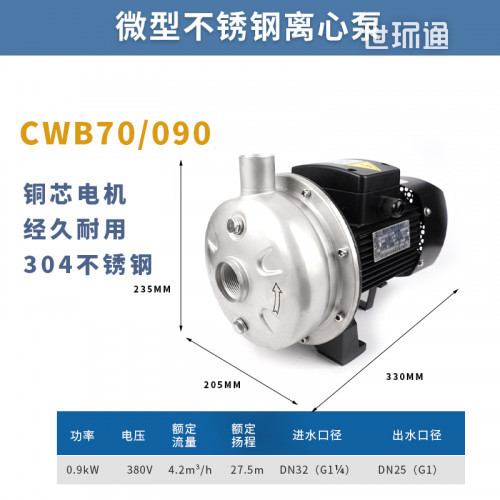 微型不锈钢泵适用于家庭增压供水、园林喷洒、农业灌溉、工业清洗、冷却及供水 系统等,输送对不锈钢(SUS304)无明显腐蚀作用的非易燃易爆液体。