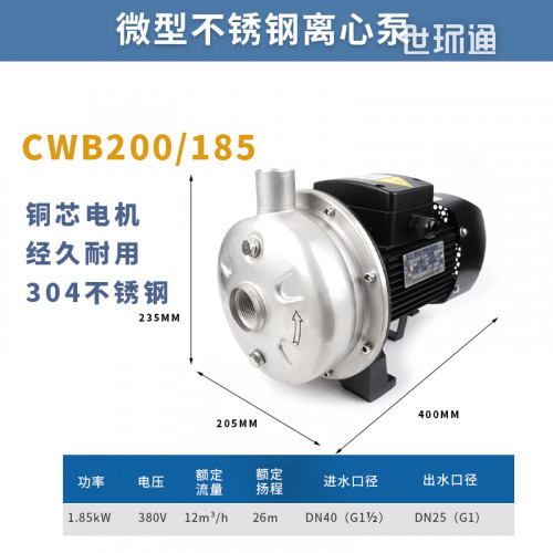 微型不锈钢泵适用于家庭增压供水、园林喷洒、农业灌溉、工业清洗、冷却及供水 系统等,输送对不锈钢(SUS304)无明显腐蚀作用的非易燃易爆液体。