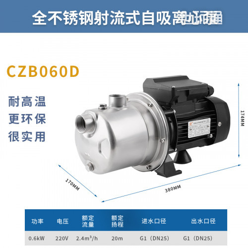 自吸泵适用于供水、家庭增压、小型灌溉系统,泳池、水箱排空及对不锈钢(SU S304)无明显腐蚀作用的非易燃易爆液体输送。