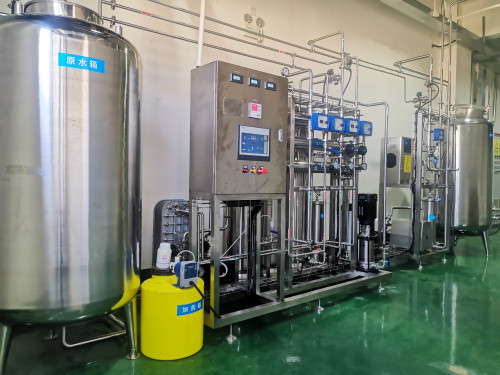 1、典型工艺流程:原水 → 原水箱 → 原水泵 → 多介质过滤器 → 活性炭过滤器 → 软化器(可选) → 保安过滤器 → 一级高压泵 → 一级反渗透(RO) → 中间水箱 → 二级高压泵 → 二级反渗透(RO) → EDI装置 / 混床 → 纯化水箱 → 输送泵 → 紫外线杀菌 → 微孔过滤器 → 用水点