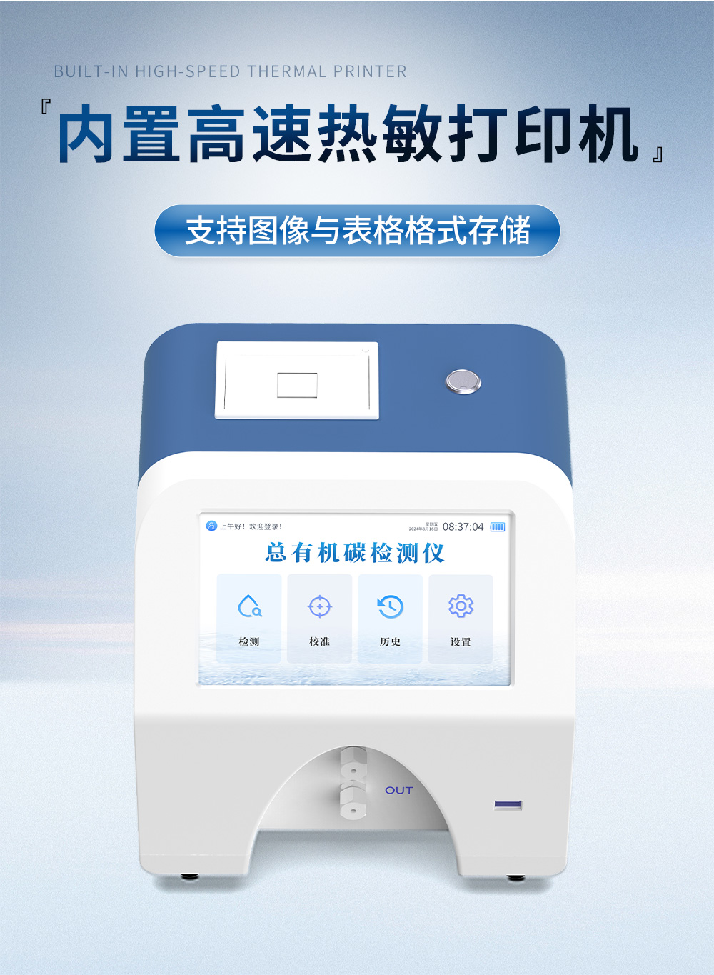 11.数据输出方式:内置高速热敏打印机,Wi-Fi(2.4G/5G)、千兆以太网(RJ45)、USB Host接口,支持数据无线/有线传输至 LIMS 或云平台