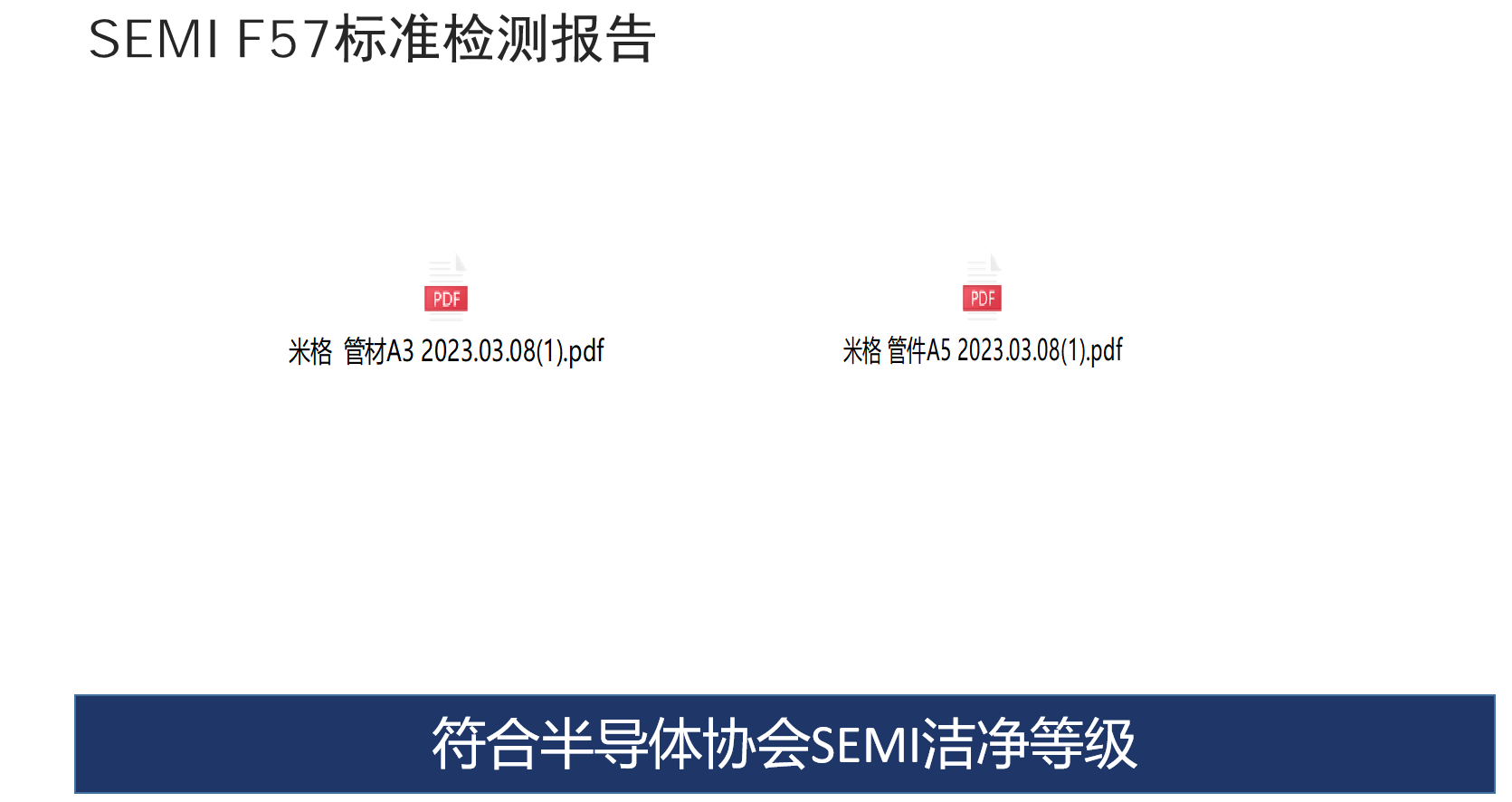 • 严格符合SEMI F57半导体高纯材料标准,极低金属离子/TOC析出,100%保障18.2MΩ·cm超纯水水质