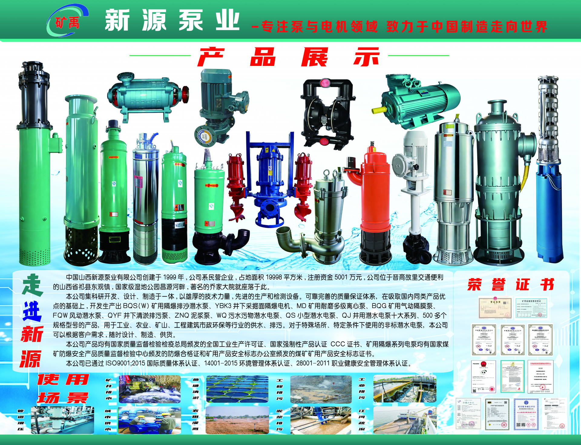 1、WQN污水泵,由潜水三相异步电动机和污水泵两大部分组成。电动机与其下部的泵体直联,中间设有可靠的机械密封能有效地防止电动机内的冷却液