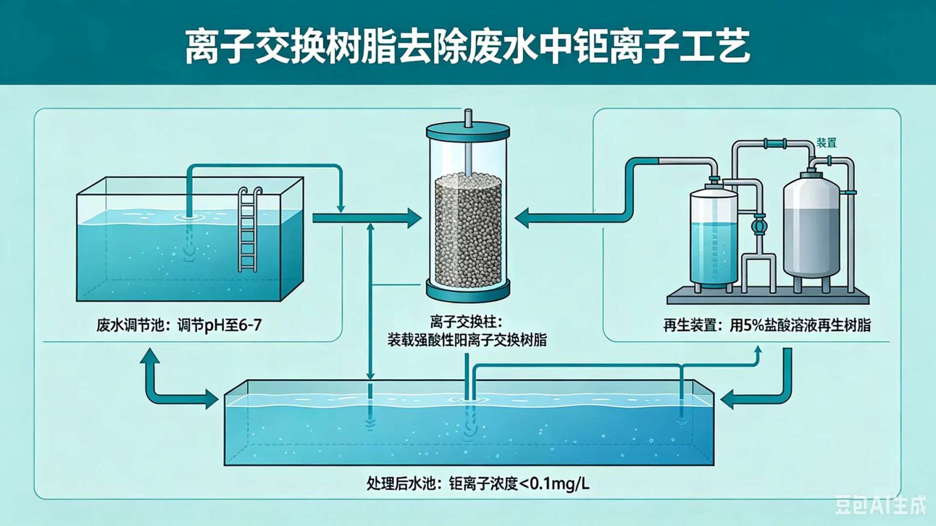 - 废水中Tl⁺铊离子被树脂官能团选择性吸附置换;