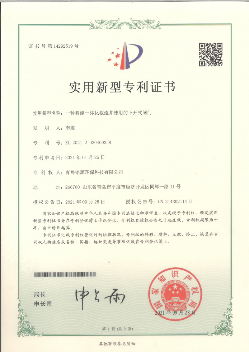 首页 > 荣誉资质 > 一种智能一体化截流井使用的下开式闸门