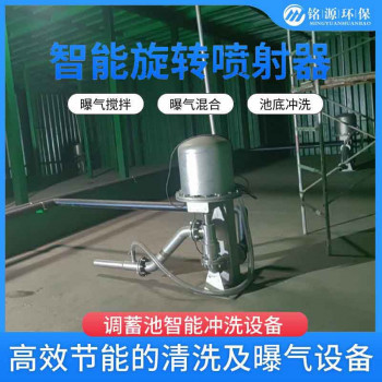 智能旋转喷射器主要用于针对雨水调蓄池设计的智能冲洗曝气设备,能够利用气液混合装置对调蓄池内含有沉渣的污水进行曝气,搅拌和冲洗,避免污水污染环境。对雨水调蓄池、箱涵、廊道等进行有效的清洗和搅拌。调蓄池内的水排空后,再对调蓄池的底部进行冲洗。不仅可以自动进行平面冲洗,而且还可以进行定点冲洗。