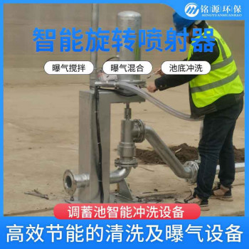 智能旋转喷射器主要用于针对雨水调蓄池设计的智能冲洗曝气设备,能够利用气液混合装置对调蓄池内含有沉渣的污水进行曝气,搅拌和冲洗,避免污水污染环境。对雨水调蓄池、箱涵、廊道等进行有效的清洗和搅拌。调蓄池内的水排空后,再对调蓄池的底A部进行冲洗。不仅可以自动进行平面冲洗,而且还可以进行定点冲洗。