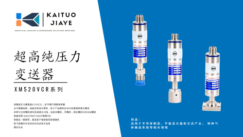 半导体生产对压力测量技术有严格应用标准,对应压力变送器需采用超高纯(UHP)专属设计。凯拓嘉业科技针对半导体行业特殊应用需求,定向研发适配该领域的 VCR 超高纯气体压力变送器,专为半导体行业超高纯气体系统打造。