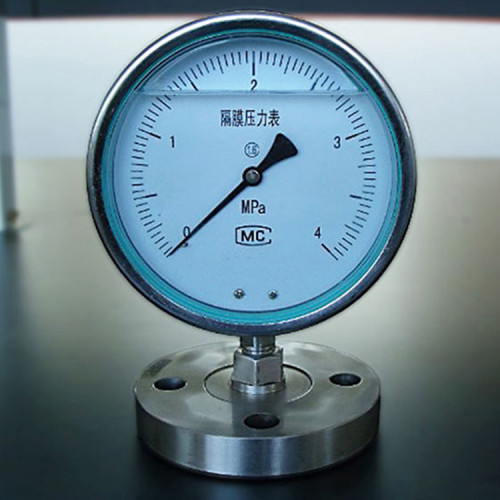 YPF膜片压力表由测量系统(包括法兰接头、波纹膜片)、传动指示机构(包括连杆、齿轮传动机构、指针和度盘)和外壳(包括表壳和罩圈)等组成。