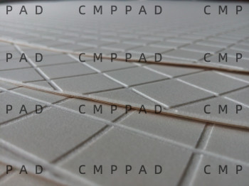 CMPPAD系列抛光垫片可以对硅片、砷化镓、磷化铟、玻璃硬盘、光学玻璃、金属制品、蓝宝石晶片、碳化硅晶片等材质或工件进行精密抛光。SUNHIN精抛光布 (Final polishing pad)以聚氨酯为主体材料,经涂层,发泡,削平及拉毛等工艺制成,它的特点是毛长,微孔大,吸药性强,同时,背面涂有高阻水性胶膜,粘结强度大,不宜脱落。SUNHIN拥有专门在抛光垫表面制作各种形状沟槽的设备及工艺,可根据用户要求设计制作各种形状沟槽。沟槽边缘成圆弧状,由于无切铣从而无碎屑及毛丝残留,也无表面硬化问题。