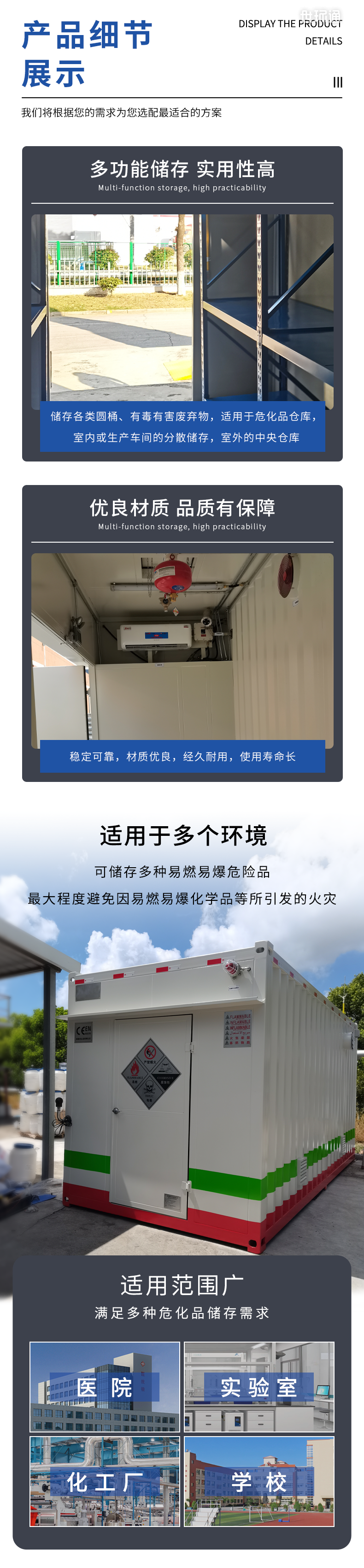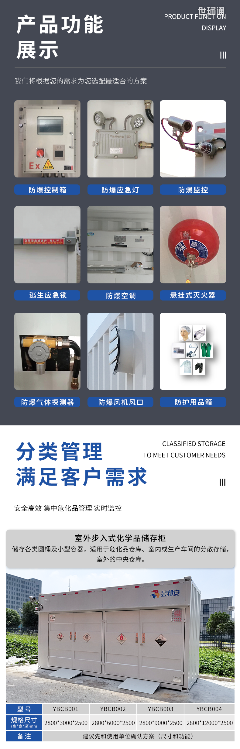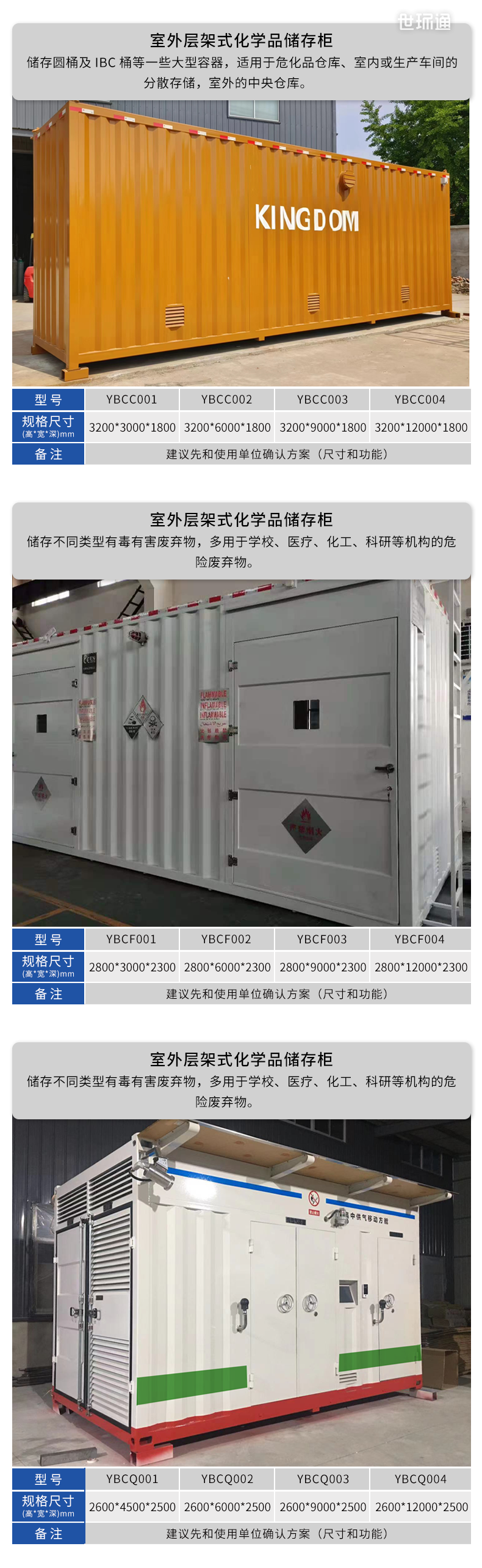 室外危化品(危废)暂存柜,分为室外步入式 化学品储存柜、室外层架式化学品存储柜、实验室危废暂存柜、室外移动式集中供气柜。