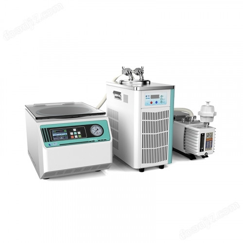 工作原理:通过抽真空将腔体内气压降低的方式来降低溶剂沸点,当压力降低时,溶液沸点随之降低,因此当压力降到一定程度时,溶液便开始沸腾;同时持续对样品进行离心,使溶液一直被收集在离心管底部,避免了溶液爆沸导致样品污染及损耗;溶剂蒸气在经过低温冷阱时液化,被冷阱捕获,可对保护真空泵进行保护,延长其使用寿命。此外样品始终处于一种低温和真空的环境,可以防止热敏感样品的失活和样品氧化。