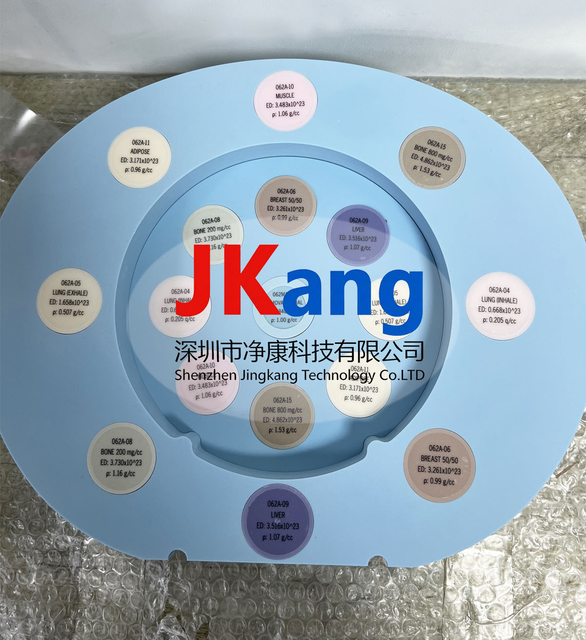 CIRS 062M电子密度模体由多种塑料水的材料组成的碟片,包括头部及腹部。在扫描区域的17个不同定位,有8种不同的等效器官效用。