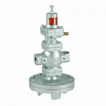 蒸汽减压阀的工作原理 蒸汽减压阀是一种自力式调节阀,其主要作用是将进口蒸汽压力降低至某一需要的出口压力,并使出口压力保持稳定。其工作原理如下: 启动前状态:导阀弹簧处于自由状态时,主阀和导阀处于关闭状态。 导阀打开:导阀有弹簧力作用打开,蒸汽经由导阀进入主隔膜室,一部分蒸汽则经由控制孔流出。 主阀打开:当导阀流入的蒸汽大于由控制孔流出的蒸汽,主隔膜阀中的控制压力增大,打开主阀。 压力反馈:随着蒸汽流过主阀,下游压力的增量经由感应管反馈,作用在导阀隔膜下,平衡隔膜上部的弹簧压力,使导阀组建关闭节流,维持主隔膜中的压力,控制主阀开度输送适量的蒸汽。 调节下游压力:调节导阀隔膜上的弹簧即可改变下游压力。