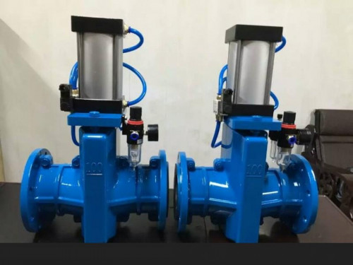 当顺转气动管夹阀手轮时,使大小阀杆同时带动上下闸板,压缩管套,进行关闭,反转即行开启,这样,闸板在导柱之间上下往复完成阀门开闭工作。另外,因橡胶管套承力,因此在开关时,操作人员旋转手轮时只要感到适量抵触,均己达到开闭极点,切勿尽力或多人辅助,禁用其他工具开闭。