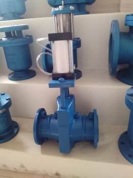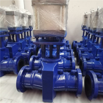 气动管夹阀结构:本阀门由左右阀体,橡胶管套、大小阀杆、上下闸板、导柱等零件组成。工作原理:当顺转手轮时,使大小阀杆同时带动上下闸板,压缩管套,进行关闭,反转即行开启,这样,闸板在导柱之间上下往复完成阀门开闭工作。另外,因橡胶管套承力,因此在开关时,操作人员旋转手轮时只要感到适量抵触,均己达到开闭点,切勿尽力或多人辅助,禁用其他工具开闭。气动管夹阀适用化工,石油、发电、碱厂、选矿、水泥、选煤、非金属等行业,可控制管路浓度砂粒状流量与截止。