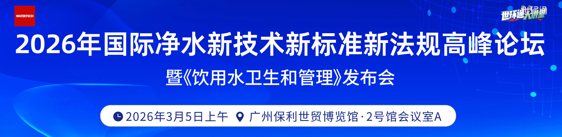 值此行业盛会之际,恰逢国家于2026年初密集发布并即将实施一系列影响深远的生活饮用水及涉水产品法规与标准。为深度解读最新政策导向,准确把握监管要求,分享全球前沿净水技术成果,推动行业合规、创新与高质量发展,我们决定在展会同期举办“2026年国际净水新技术新标准新法规高峰论坛暨《饮用水卫生和管理》(第二版)发布会”。本届论坛将紧扣“新标准驱动,新技术赋能,护航饮用水安全新未来”主题,直面行业核心挑战,搭建高规格、权威性的交流与合作平台。