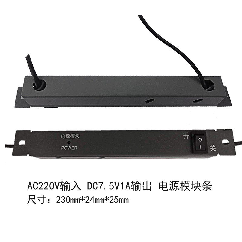 这是一款高性能弱电箱电源模块条,AC220V电压输入,提供一路DC7.5V1A电源输出、可给交换机路由器光猫等网络设备供电。