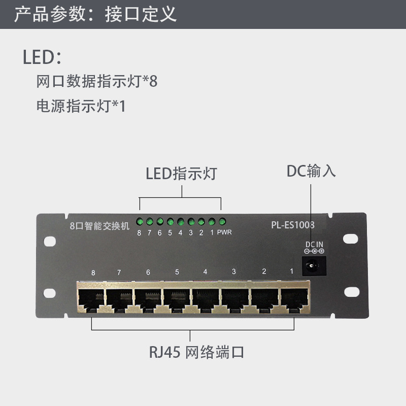 8口交换机参数细节: