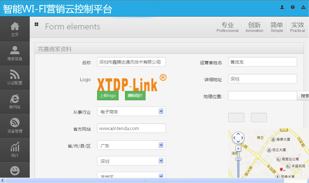 云端后台提供广告管理(认证页面标题/logo/幻灯片/文本/微信/联系电话/联系地址等信息)
