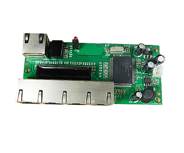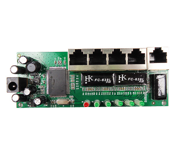 产品特征: l符合IEEE 802.3和IEEE 802.3u标准 l5口10/100Mbps自适应RJ45端口,支持自动翻转(Auto-MDI/MDIX) l所有端口支持IEEE 802.3x半双工流量控制和全双工回压模式 l无阻塞交换架构,全线速转发和最大吞吐量过滤数据包 l支持MAC地址学习,自动调整传输方式和传输速率 lLED指示电源和link/activity,提供简单的工作状态提示及故障排除 lMini的布线尺寸,PCBA尺寸:100x45x15mm l外置电源DC7.5V1A,DC输入为2pin排针 l产品过CE和ROHS认证 l芯片: IP175