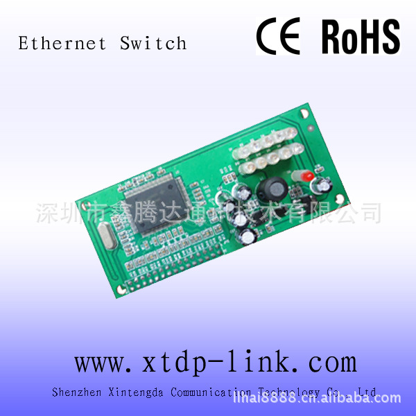 产品特征: l符合IEEE 802.3和IEEE 802.3u标准 l5口10/100Mbps自适应RJ45端口,支持自动翻转(Auto-MDI/MDIX) l所有端口支持IEEE 802.3x半双工流量控制和全双工回压模式 l无阻塞交换架构,全线速转发和最大吞吐量过滤数据包 l支持MAC地址学习,自动调整传输方式和传输速率 lLED指示电源和link/activity,提供简单的工作状态提示及故障排除 lMini的布线尺寸,PCBA尺寸:120x45x10mm l外置电源DC7.5V1A l产品过CE和ROHS认证 l芯片: IP175
