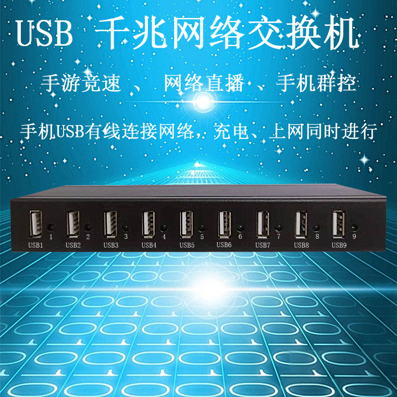 手机有线上网充电游戏视频直播配数据线适用华为苹果9口USb交换机