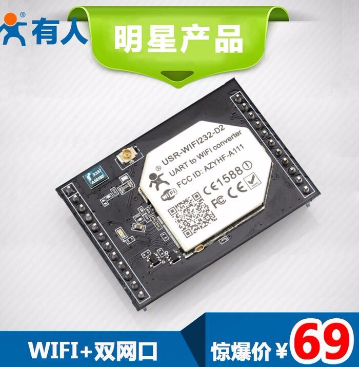 有人USR-WIFI232-D2wifi模块嵌入式串口uart转以太网双网口无线物联网 串口转wifi模块