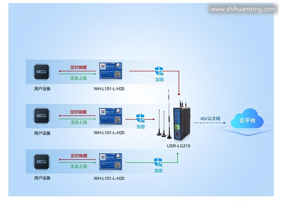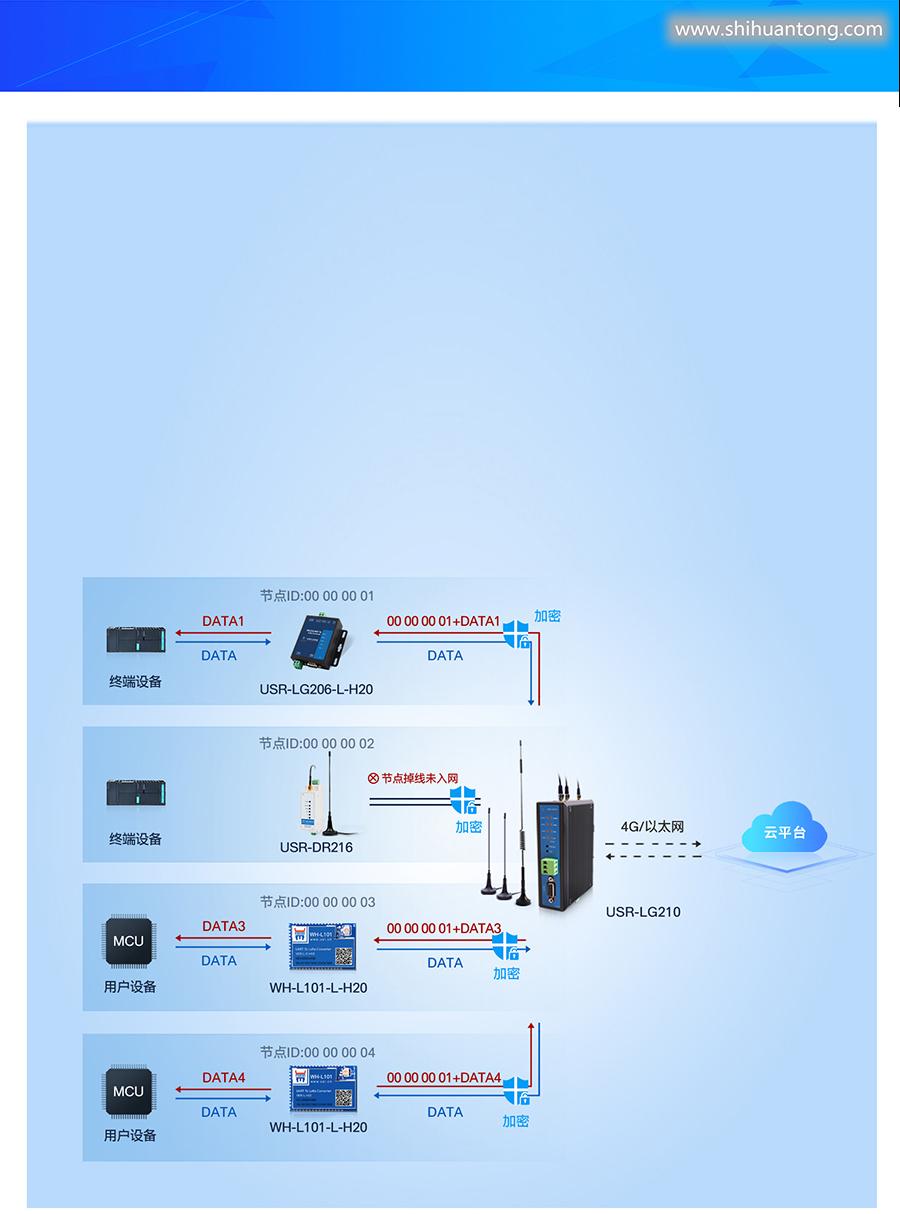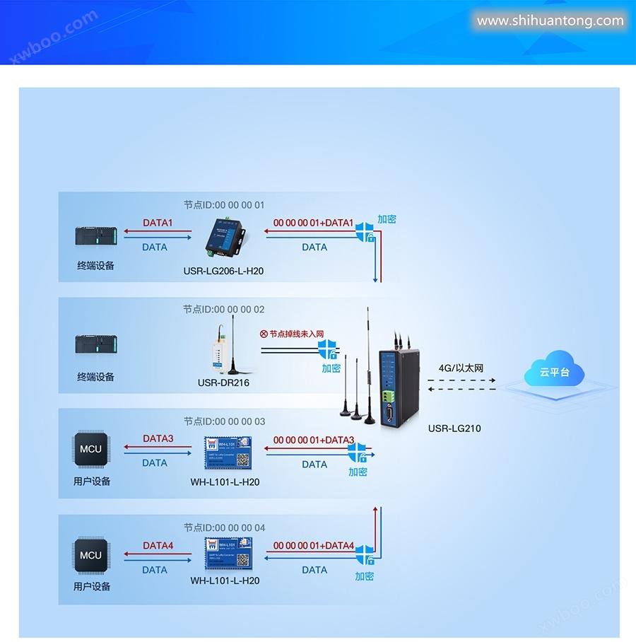 所有节点根据对应时间与LG210网关进行有序传输,此功能下支持节点模组低功耗运行。