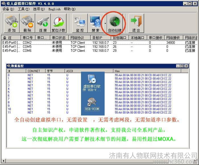 应用三:利用虚拟串口软件(USR-VCOM)实现原串口程序远程控制设备