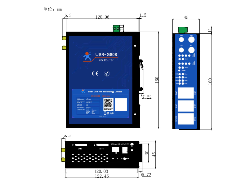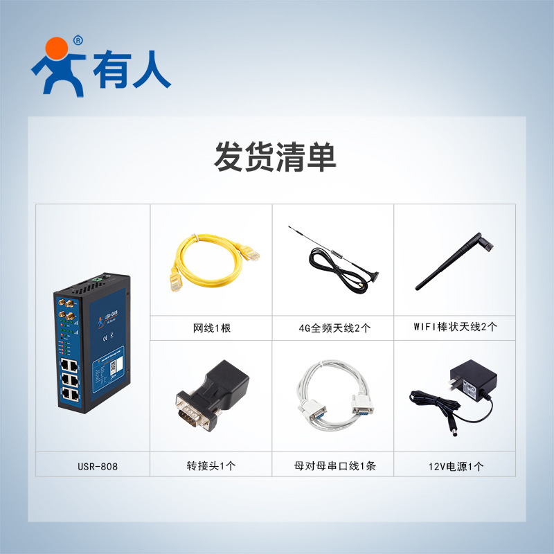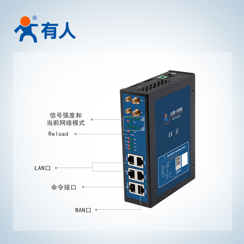 | 产品名称 | USR-G808-22 | 双卡4G工业无线路由器 |