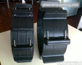 我们生产的HY系列的管道绝缘支架的内壁上贴上了5mm橡胶板,在满足了设计要求的前提下,即防止了在施工中对管道外防腐层的损伤,又有效的提高施工速度和施工质量。