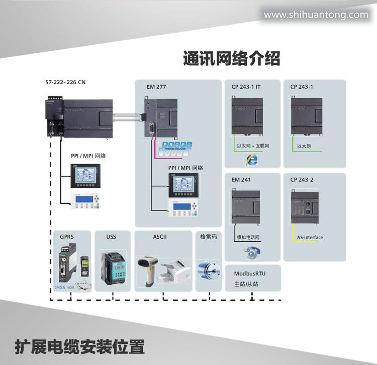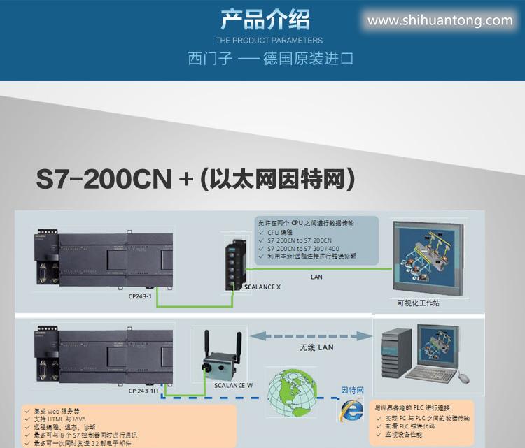 CP 243-1 是一种通讯处理器,设计用于在S7-200 自动化系统中运行。它可用于将S7-200 系统连接到工业以太网(IE)中。CP 243-1 有助于 S7 产品系列通过因特网进行通讯。因此,可以使用STEP 7 Micro/WIN 32,对S7-200 进行远程组态、编程和诊断。而且,一台S7-200 还可通过以太网与其它S7-200、S7-300 或S7-400 控制器进行通讯。并可与OPC 服务器进行通讯。 在开放式SIMATIC NET 通讯系统中,工业以太网可以用作协调级和单元级网络。在技术上,工业以太网是一种基于屏蔽同轴电缆、双绞电缆而建立的电气网络,或一种基于光纤电缆的光网络。工业以太网根据标准IEEE 802.3 定义。 应用领域 简单自动 化任务用SIMATIC S7-200Micro PLC SIMATIC S7-200的应用领域从更换继电器和接触器一直扩展到在单机、网络以及分布式配置中更复杂的自动化任务。S7-200也越来越多地提供了对以前曾由于经济原因而开发的特殊电子设备的地区的进入。 除了五种不同CPU的全面基本功能,SIMATIC S7-200的模块化系统技术还提供了一系列可升级的扩展模块,以满足各种需求对功能性的极高要求。 优点 SIMATIC S7-200发挥统一而经济的解决方案。整个系统的系列特点 强大的性能, *模块化和 开放式通讯。 S7-200 性能优越,久经考验,适合于工业领域的各种应用: 结构紧凑小巧-狭小空间处任何应用的理想选择 在所有CPU型号中的基本和高级功能, 大容量程序和数据存储器 杰出的实时响应-在任何时候均可对整个过程进行完全控制,从而提高了质量、效率和安全性 易于使用STEP 7-Micro/WIN工程软件-初学者和专家的理想选择 集成的 R-S 485接口或者作为系统总线使用 极其快速和精确的操作顺序和过程控制 通过时间中断完整控制对时间要求严格的流程 -------------------------------------------------------------------------------- 设计和功能 可选模块 在性能范围中模块化5个不同的CPU,具有全面的基本功能和集成的Freeport通讯接口 用于各种功能的一系列扩展模块: -数字/模拟扩展,可升级至具体要求,作为从站的PROFIBUS通讯 -作为主站的AS-Interface通讯 -确切的温度测量 -定位 -远程诊断 -以太网/互联网通讯 -SIWAREX MS 称重模块 HMI功能 带有Micro/WIN附加指令库的STEP 7-Micro/WIN软件 引人注目的系统工程-目前的特点是用于完整自动化任务的各种不同要求的精确尺寸和的解决方案 主要特点 突出数据记录用记忆卡,配方管理,STEP 7-Micro/WIN的项目节约,以及各种格式的文件存储 PID自动调谐功能 用于扩展通讯选项的2个内置串口,例如:与其它制造商的设备配套使用(CPU 224 XP, CPU 226) 具有内置模拟输入/输出的CPU 224 XP