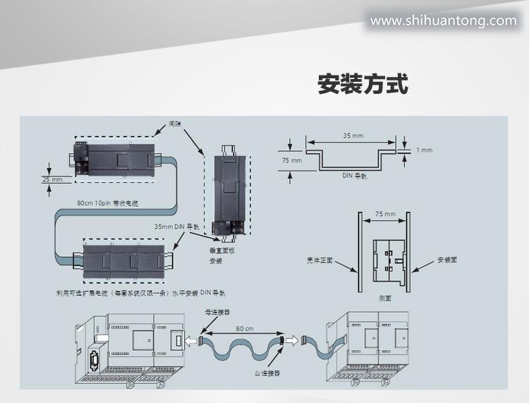 全国统一 :  全国统一 :  全国统一 :              全国统一 : 模拟量扩展模块模拟量扩展模块提供了模拟量输入/输出的功能,优点如下: 1、适应性 可适用于复杂的控制场合 2、直接与传感器和执行器相连,12位的分辨率和多种输入/输出范围能够不用外加放大器而与传感器和执行器直接相连,例如EM231 RTD模块可直接与PT100热电阻相连 3、灵活性 当实际应用变化时,PLC可以相应地进行扩展,并可非常容易的调整用户程序。 定位模块EM 253是一个用于简单定位任务的功能模块(1轴)。可以将它连接到步进电机和伺服电机,通过高频脉冲输入从Micro Stepper连接到高性能伺服驱动器。 EM 253定位模块以与扩展模块相同的方式进行安装,通过一体化连接电缆连接到S7 - 200扩展总线。 连接之后,从CPU自动读出配置数据 该模块具有以下特点: -用于来自过程信号的5位输入 -驱动器直接激活用24脉冲输出(向前/向后或者速度/方向) -2控制输出(DIS;CLR)。 -12个状态LED To the top of the page 称重模块SIWAREX MS是一种多用途称重模块,用于各种简单称重和力测量任务。在SIMATIC S7-200自动化系统中可以很容易安装地紧凑型模块。可以在SIMATIC CPU中直接访问实际重量的数据,无需任何额外接口。 1、使用65000件高分辨率和0.05%的准确度测量重量或者力 2、通过RS232接口,使用SIWATOOL MS PC程序简便地调整规模支持更换模块,无需更新规模调整 3、针对在Ex 2区使用,通过Ex接口为1区供电的本质安全测压元件 热电偶模块EM231(模拟模块)热电偶模块EM231是一个采用标准热电偶和高精度温度传感器。在±80 mV范围内也可能检测到低电平模拟信号。热电偶模块EM231可以与CPU 222,224和226配套使用。 4个或者8个模拟输入 不同的测量范围:J,K,T,E,R,S和N型热电偶;±80 mV的模拟信号采集检查开放线路 冷连接点的补偿 温度刻度:可以将测得的温度规定为°C或者°F。 热电阻模块EM231 RTD(模拟模块)热电阻模块EM231是一个采用标准电阻温度检测器的高精度温度传感器。它们可以与CPU222,224和226配套使用。热电阻模块应安装在低温度波动的位置处,从而确保zui高的准确度和可重复性。 两个或四个温度检测器用模拟输入 全部电阻温度检测器必须为相型 在墙或者DIN导轨上直接安装
