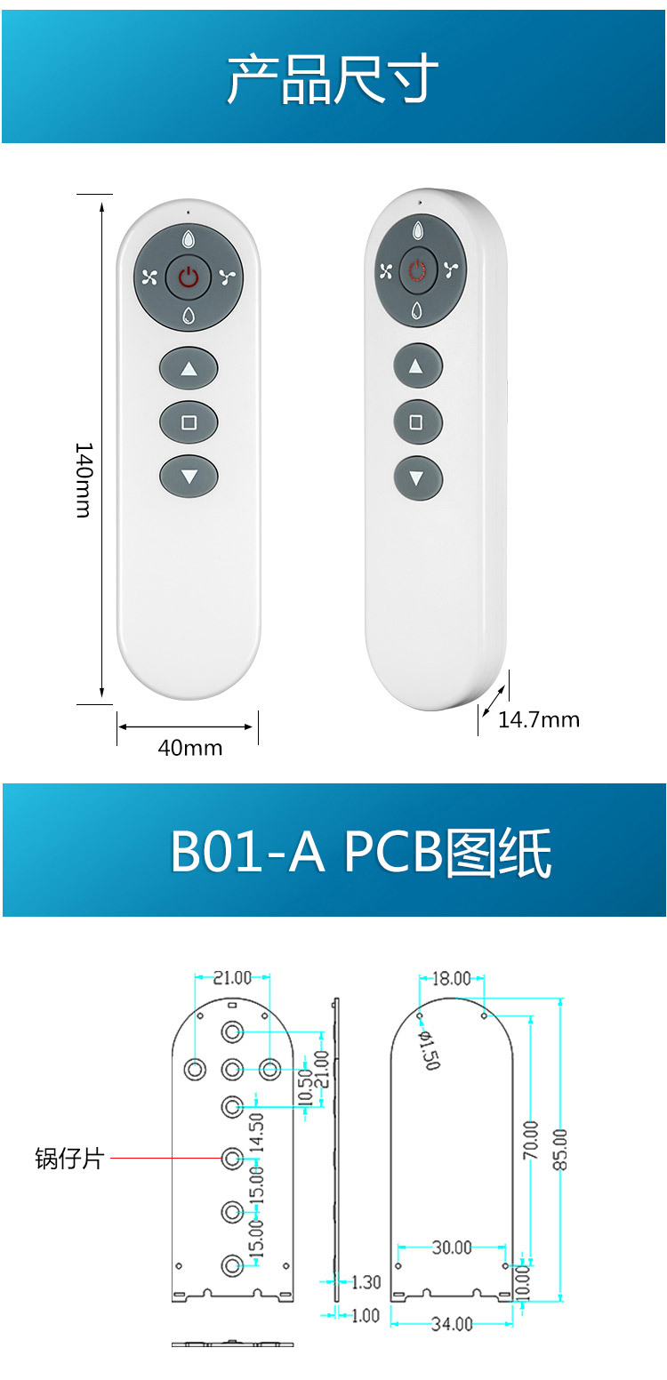 规格B01-A 白色+灰色硅胶按键-140*40*14.7mm,B01-B白色+黑色硅胶按键-120*40*10.6mm(8个按键),B01-B2白色+黑色硅胶按键-120*40*10.6mm(7个按键)