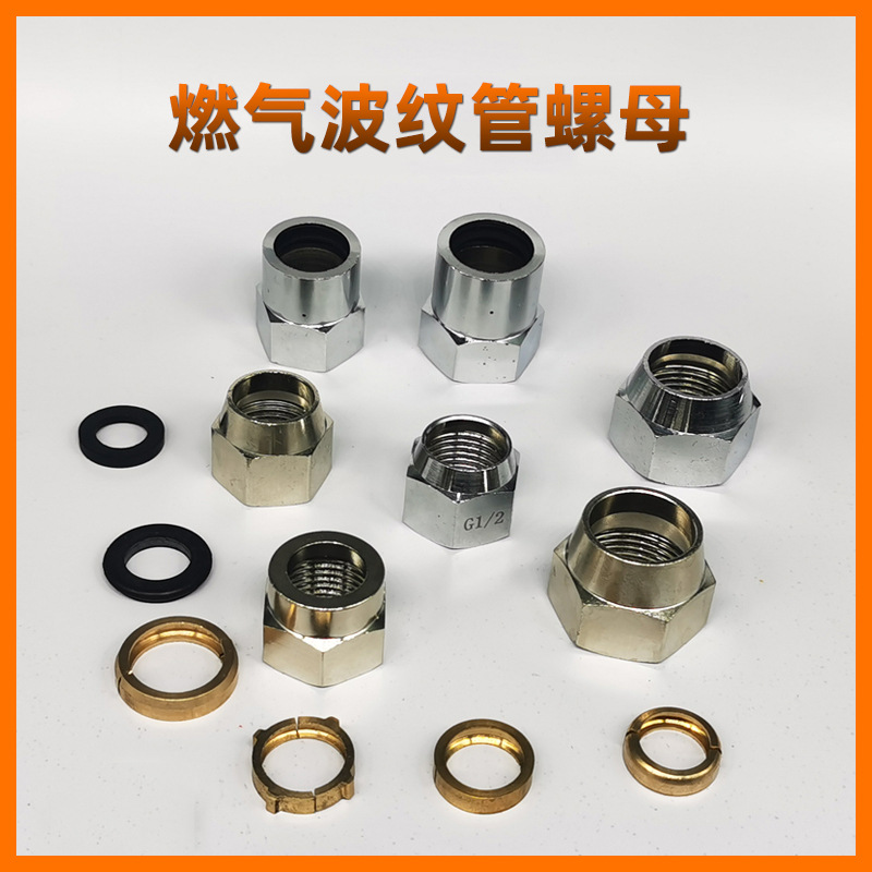 4分5分燃气铜螺母带检测孔天然气管道工程专用接头燃气波纹管螺帽