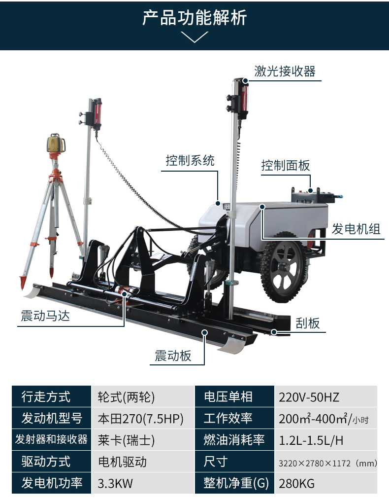混凝土激光整平机路面镇振平尺地面水泥砂浆抹平板震动自动找平机