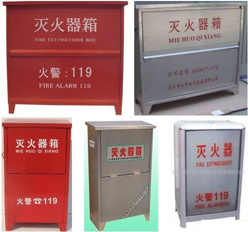 灭火器箱的种类有:钢制灭火器箱、铝合金玻璃灭火器箱、不锈钢灭火器箱