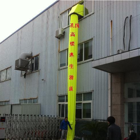 逃生滑道是在外層防火、內層導滑,每层均為高抗拉力并经静电处理的布管,内于适当的位置装置由特殊橡胶漏斗状,橡胶漏斗环带具有松紧性,让人的身体经过时产生一定的阻力缓冲,所以此环带具有缓降效果,约以每米一秒的速度安全降下。