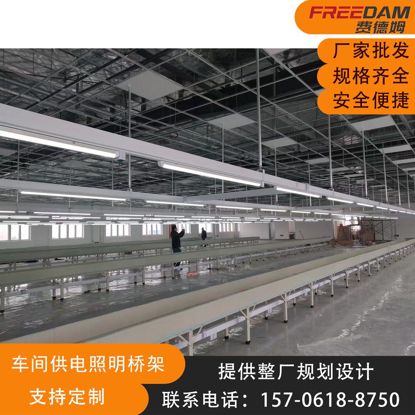 厂家直供车间照明灯架桥架电子厂皮具厂制衣厂灯架一体式滑轨桥架