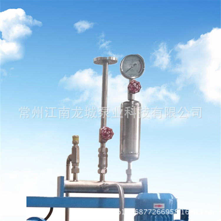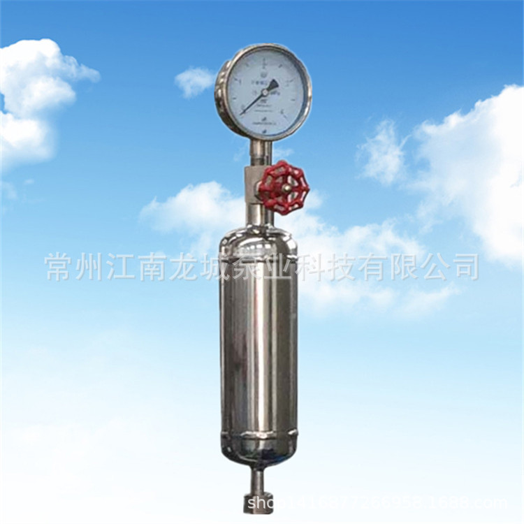 由于计量泵为往复泵,所有输出的流体为脉动流,缓冲器用于缓和液体在管路系统中产生的脉动。此脉动会在管路系统中产生压力,有时候还会对工艺系统产生不良影响。囊式或者隔膜式缓冲器最小工作压力为2公斤,若小于2公斤,要求在管路系统安装背压阀。这两种缓冲器在使用前需预充惰性气体,充气压力为管道压力的0.5-0.8倍。