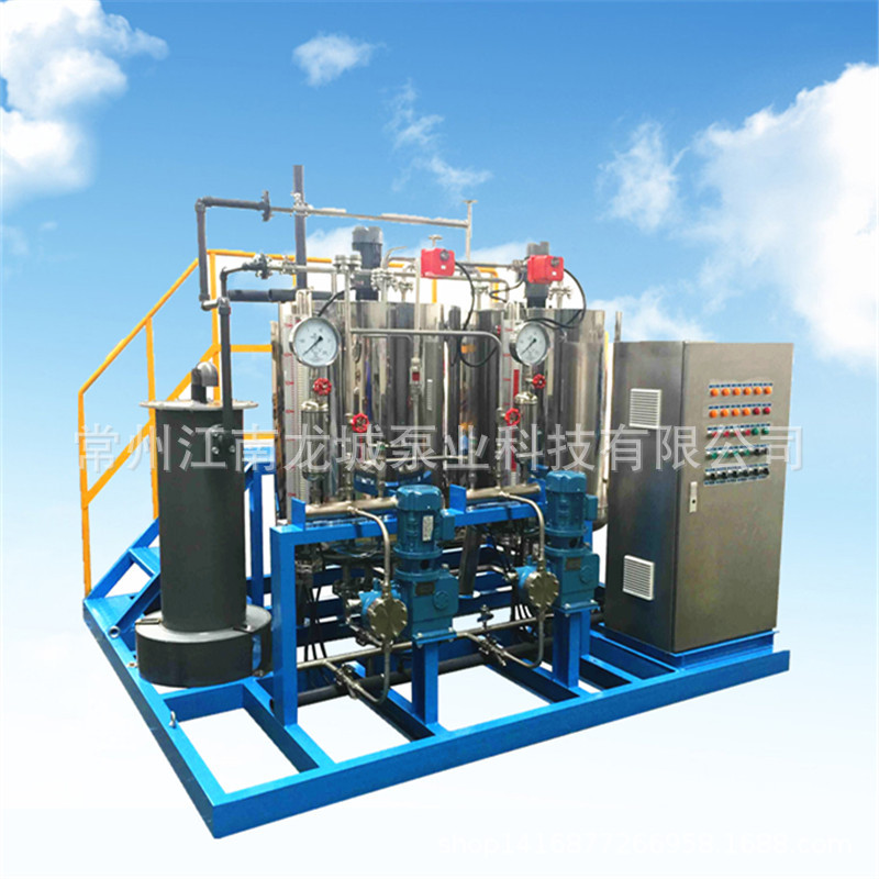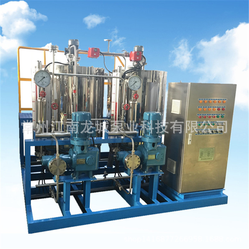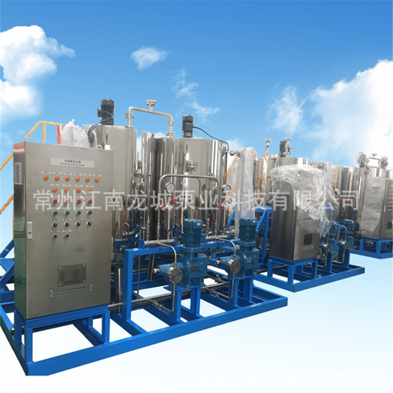 本厂生产的炉内加药装置包括给水加氨、加联胺、炉水加磷酸盐协调控制、凝结水加氨等系统。加药装置的单元组合形式主要视机组容量大小,锅炉配置的方式(二炉共用一套或单炉套等),自动化水平的高低(自动或手动控制。也可实现自动配药的功能),加药泵种类的选用(交流或支流马达,进口或国产泵)灵活的组成各种不同形式单元,安装在一个底座上,这种工厂化的整套装置,大大减少了设计和现场安装的工作量,对整机的质量,安全和现场投运提供了可靠的保证。方便安装,系统的更改也较为灵活。