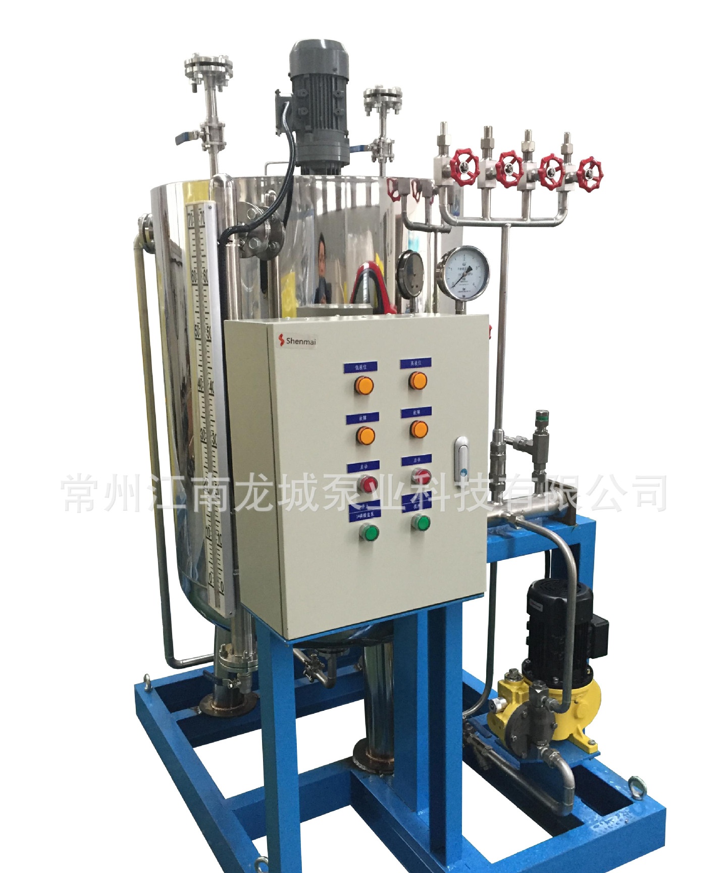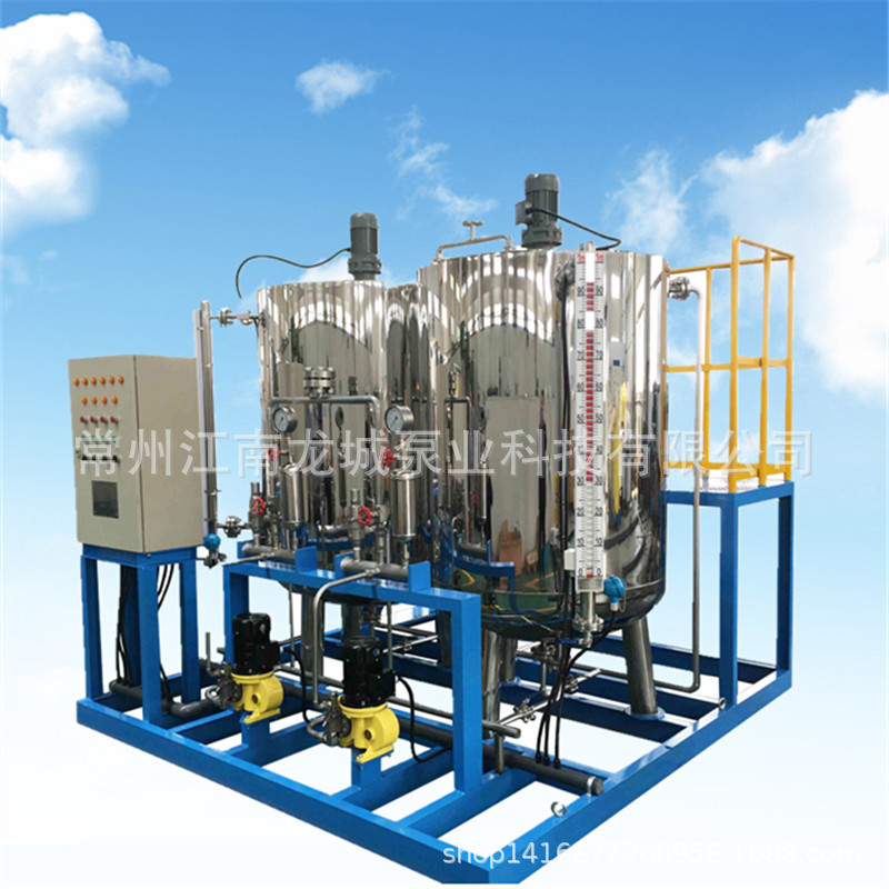 本厂生产的炉内加药装置包括给水加氨、加联胺、炉水加磷酸盐协调控制、凝结水加氨等系统。加药装置的单元组合形式主要视机组容量大小,锅炉配置的方式(二炉共用一套或单炉套等),自动化水平的高低(自动或手动控制。也可实现自动配药的功能),加药泵种类的选用(交流或支流马达,进口或国产泵)灵活的组成各种不同形式单元,安装在一个底座上,这种工厂化的整套装置,大大减少了设计和现场安装的工作量,对整机的质量,安全和现场投运提供了可靠的保证。方便安装,系统的更改也较为灵活。