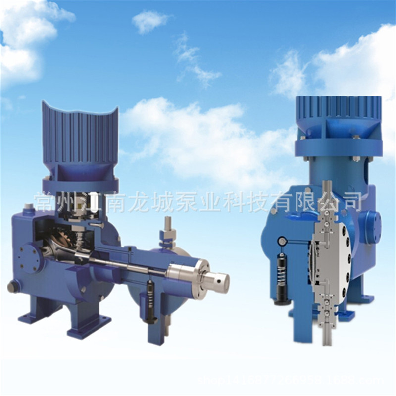 本系列泵特点: 1、柱塞采用间隙密封,无任何易损耗的密封件 2、简化的液压系统,不装补油阀和排气阀,保证泵工作时自动补油自动排气。 3、内置安全阀保护 4、流量调节原理为调节液压油旁路油量达到调量目的。 5、同型号泵相比体积小巧 6、膜片使用寿命长。正常使用寿命超过3年。