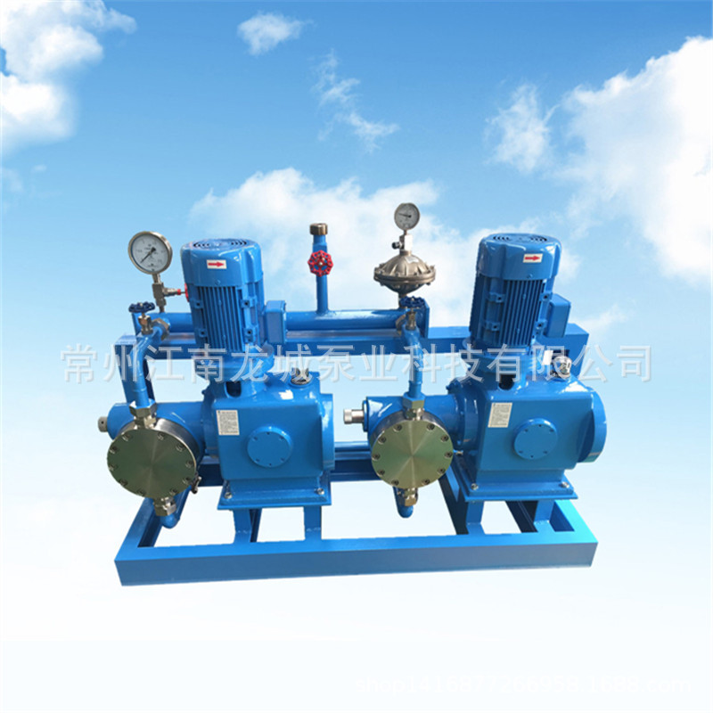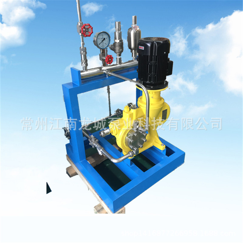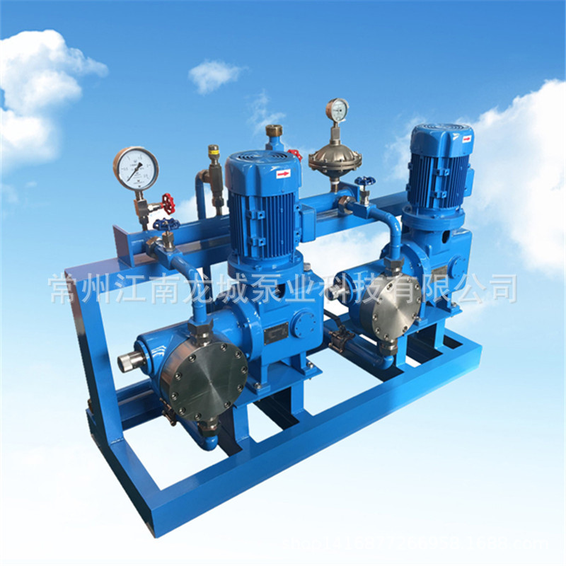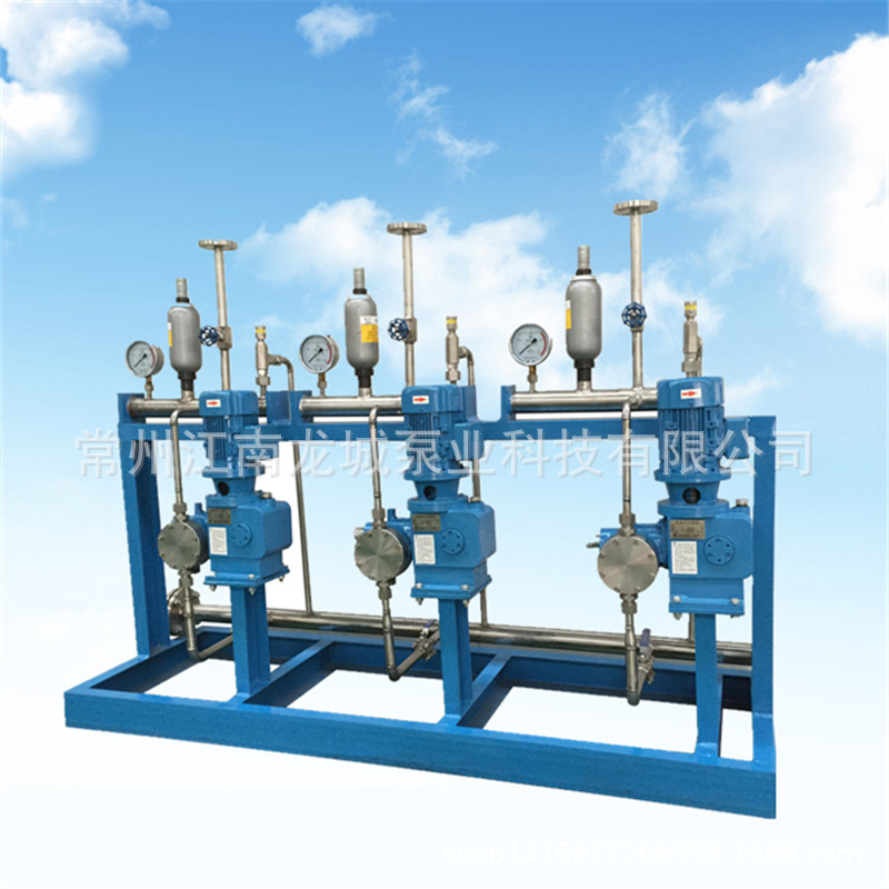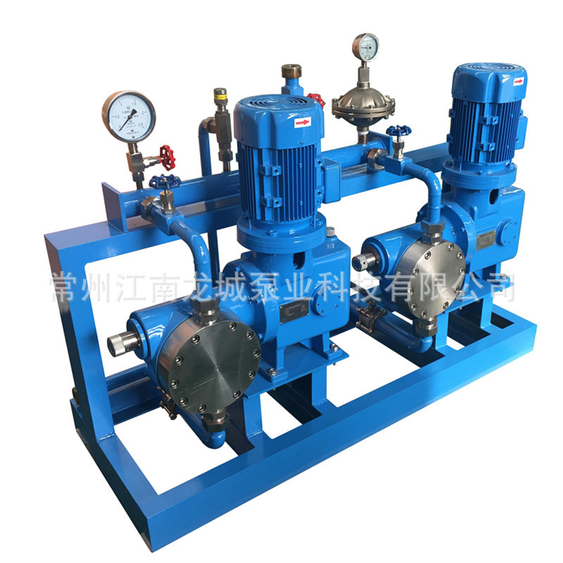 计量泵在实际使用中,需安装配置相应的附件,入口需要过滤器、球阀、效验柱,出口需要安全阀、缓冲器、背压阀、止回阀、压力表等等,所以现场安装需要一定的工作量并且这些管件和附件的布局会比较散乱,如果出厂前将泵和管道及附件组合成撬装式,所有需要的阀门在出厂前全部连接好,留一个入口法兰和一个出口法兰,设备到现场安装就会极其简单,设备外观也更加紧凑美观。