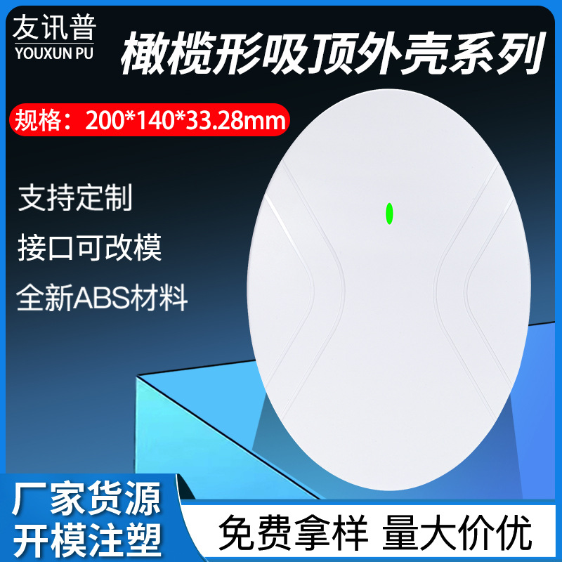 商品属性 产地深圳 品名橄榄形吸顶外壳 是否进口否 牌号1 材质ABS 货号橄榄形吸顶外壳 分类电子产品外壳 品牌友讯普 规格尺寸200*140*33.28mm 用途吸顶AP