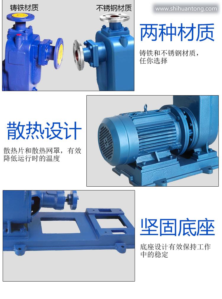 ZX系列自吸泵是属自吸式离心泵,管路中不需安装底阀,工作前只需保留泵体内储有定量引液即可,因此简化了管路系统,又改善了劳动条件。