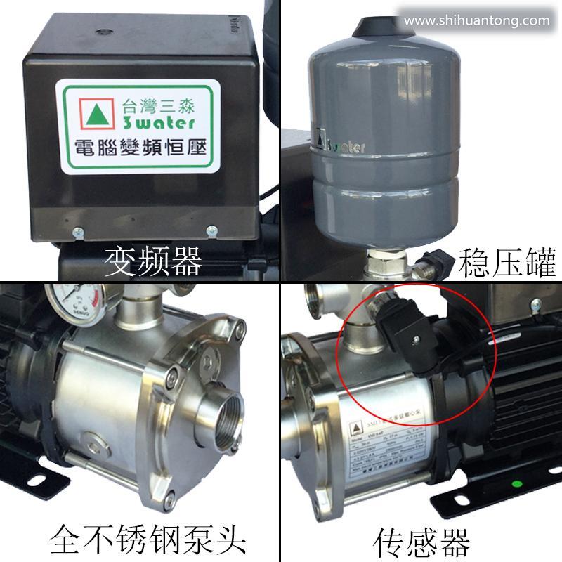 SMI系列变频泵恒压泵浦是将卧式或立式离心泵,水泵用变频器,止回阀,压力传感器,压力桶等,组合的智能供水系统。