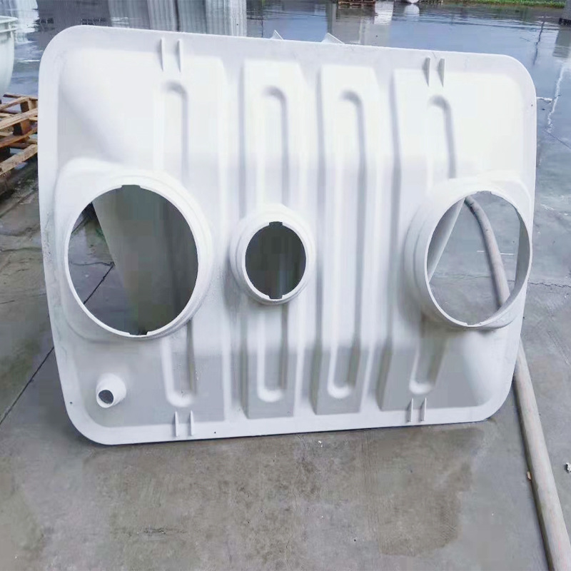 池体采用玻璃钢材料模压工艺制成,强度高,密封性好,不会发生因地基沉降而引起的断裂破损和池内板结浮渣层现象。